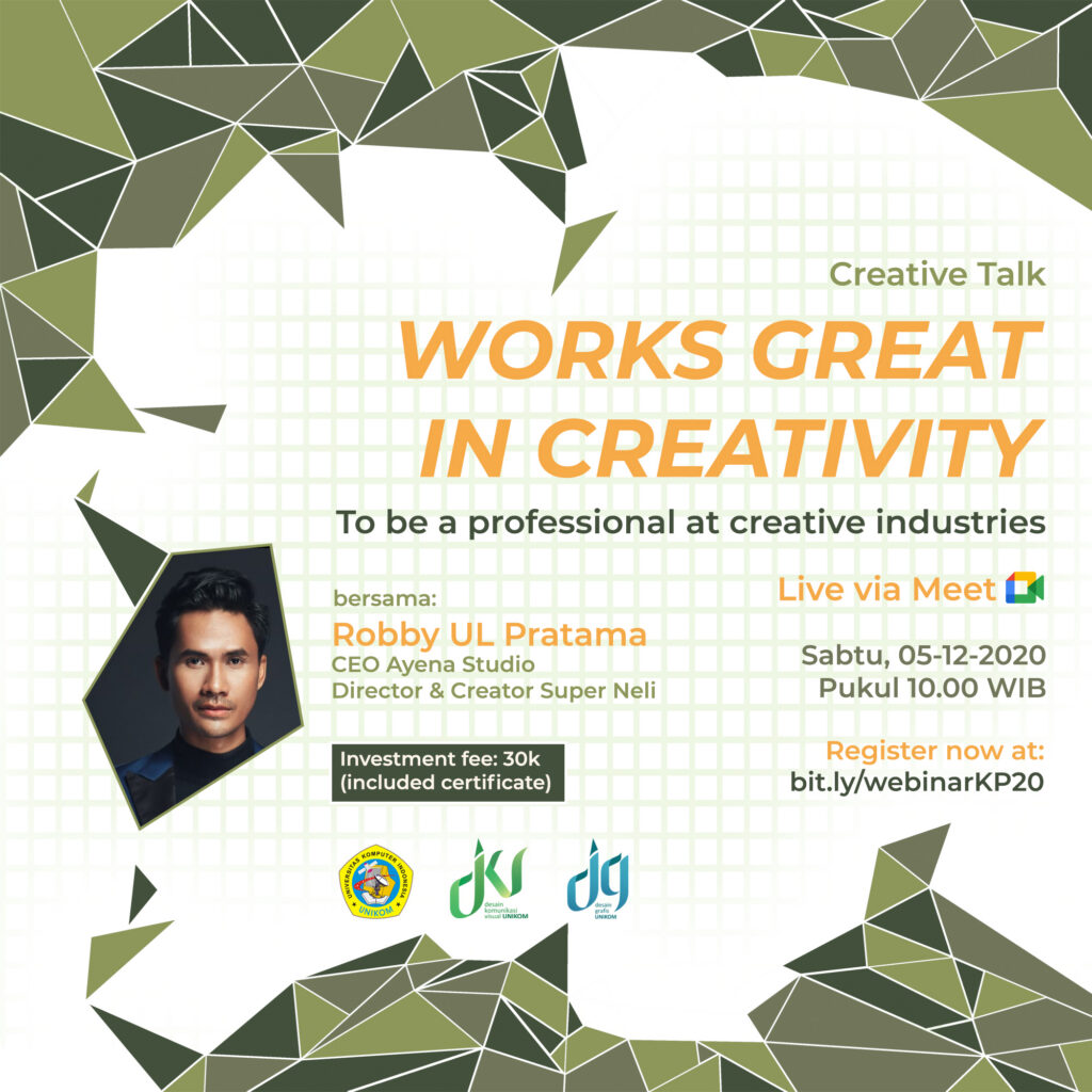 Creative Talk dengan tema “Works Great in Creativity: To be a professional at creative industries” secara online.