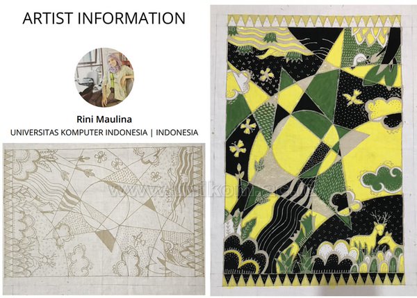 Lebih lanjut, Rini menceritakan proses mengikuti acara INACADE 2021, saya harus benar-benar memahami ketentuan kompetisi, kemudian saya memilih beberapa karya saya yang sudah selesai, untuk didaftarkan dalam kompetisi. Saya siapkan konsep karya, ukuran karya dan ukuran file dan disesuaikan dengan ketentuan karya. karya saya merupakan karya seni rupa dengan teknik batik tulis, saya mempersiapkan karya dari proses sketsa hingga pembatikan selama 1 bulan lamanya, saya sertakan 2 karya untuk mengikuti pameran INACADE 2021.