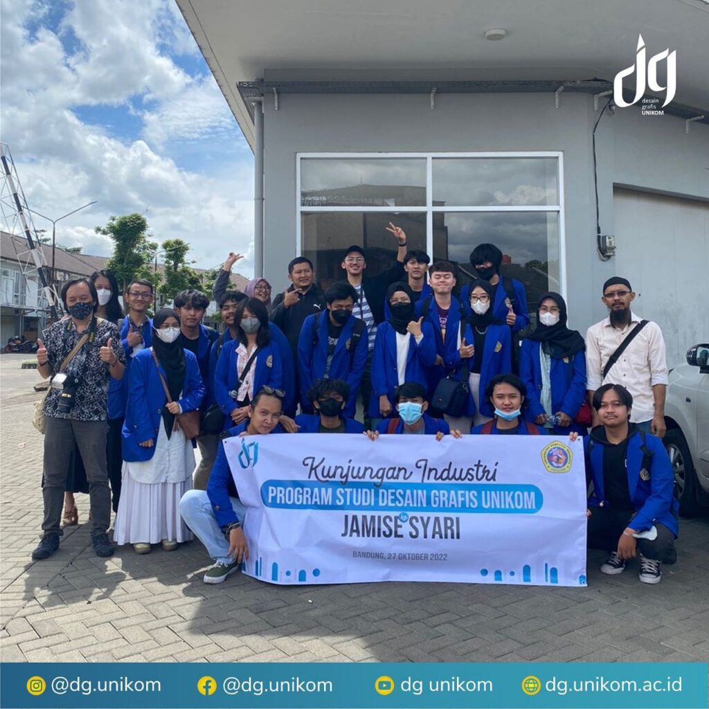 Program Studi Desain Grafis UNIKOM melakukan kunjungan industri ke Jamise Syari di Bandung. Kunjungan yang dilaksanakan pada 27 Oktober 2022 ini diikuti oleh mahasiswa angkatan 2020 dan 2021 guna menambah wawasan mereka selain ilmu yang didapatkan di kampus terkait mata kuliah Studio Desain Grafis dan Kewirausahaan.