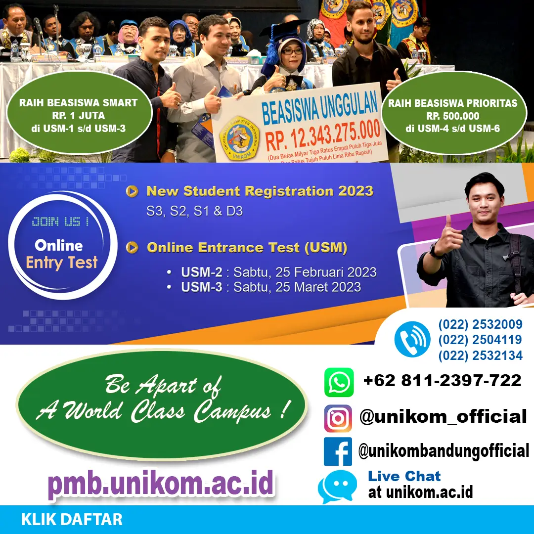 Berita UNIKOM Menerima Pendaftaran Mahasiswa Baru T.A 2023/2024 Jenjang Magister, S1 dan D3 February 13, 2023 No Comments